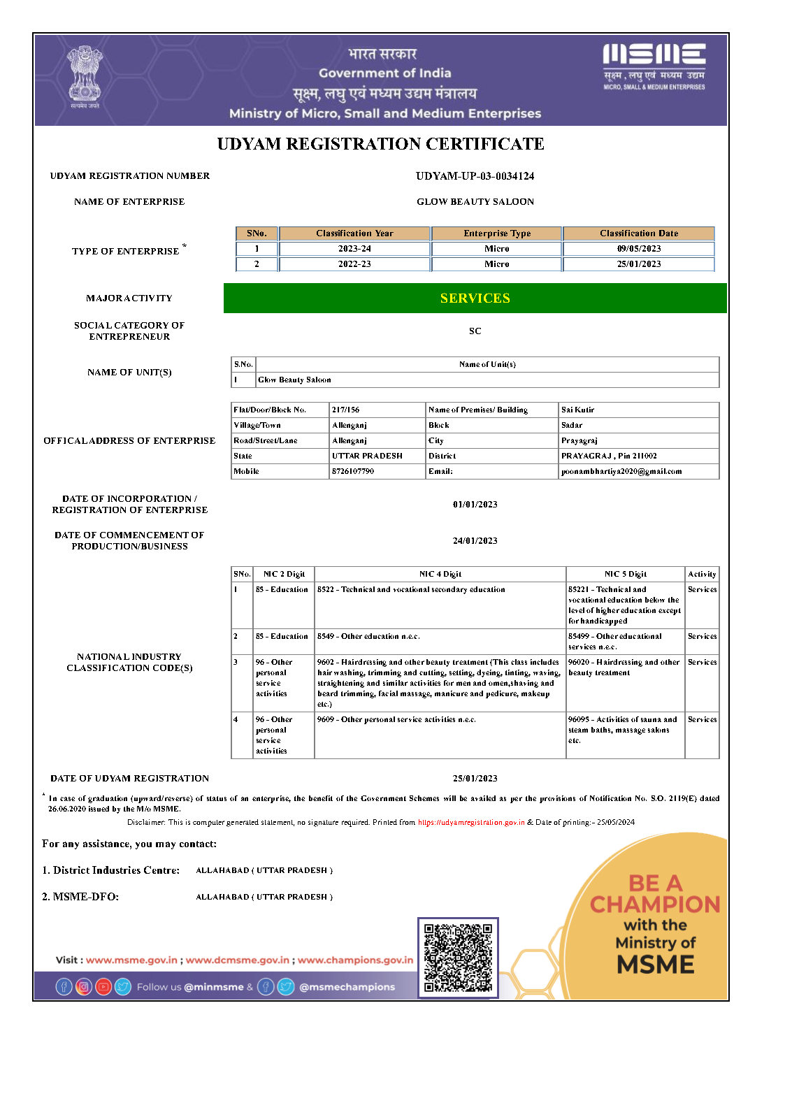 Date of Udyam Registration: 25-January-2023